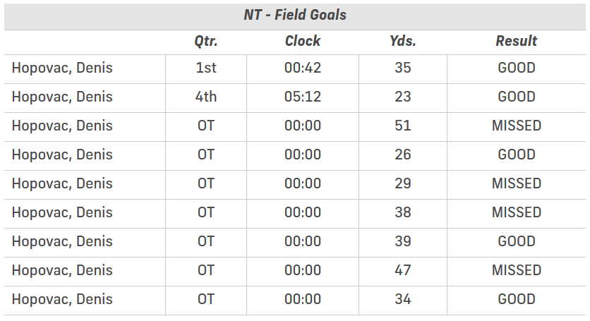 Was there a reason why so many field goals were attempted? I’ll get to that a bit later.