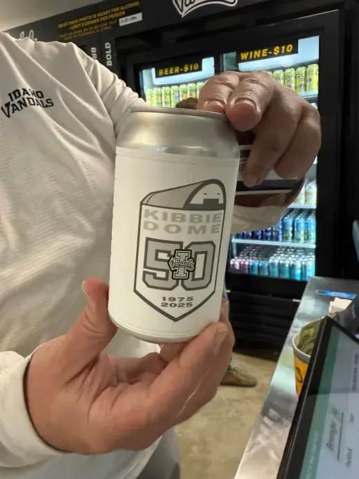 We head back to the Press Box but on the way back, Jerek shows me a beer for the 50th Anniversary of the Kibbie Dome roof.