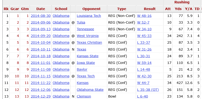 Samaje Perine’s game log in 2014