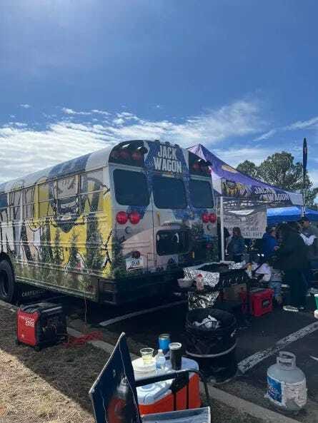 I chat with NAU Loggers (click the link to support them) and find out they only chainsaw the wood after each NAU touchdown. No log cutting for field goals. I give them some koozies and merch for being so awesome. I explain to them we love what they do and its a unique flair to the college football landscape. Who really cares if an MLS or CFL also does this, they are the only college team to do it.