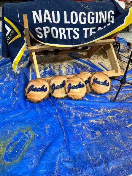 The log cutting is an incredible ceremony, and after the piece is cut it is held up to fire up the crowd. Funny thing is after each piece is cut, the wood becomes property of NAU Athletics, so I was unable to take a piece of the log home. (However, if you are reading this Monica, I can give you my address to send me one. Also, I don’t think the log would have survived the baggage handlers or the TSA.)