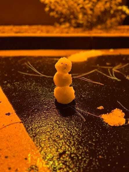 I head back to the hotel and spot a little tiny parking lot snowman next to where I parked. I watch a little football and really fall asleep rather quickly.