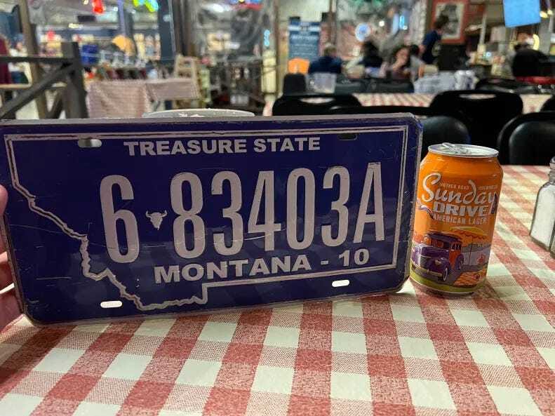 I ordered a Pulled Pork sandwich with some spicy BBQ sauce and asked for a local beer and was provided a Sunday Drive from Mother Road Brewing Company. They handed me a Montana license plate as my table sign and I sat down waiting for my food.