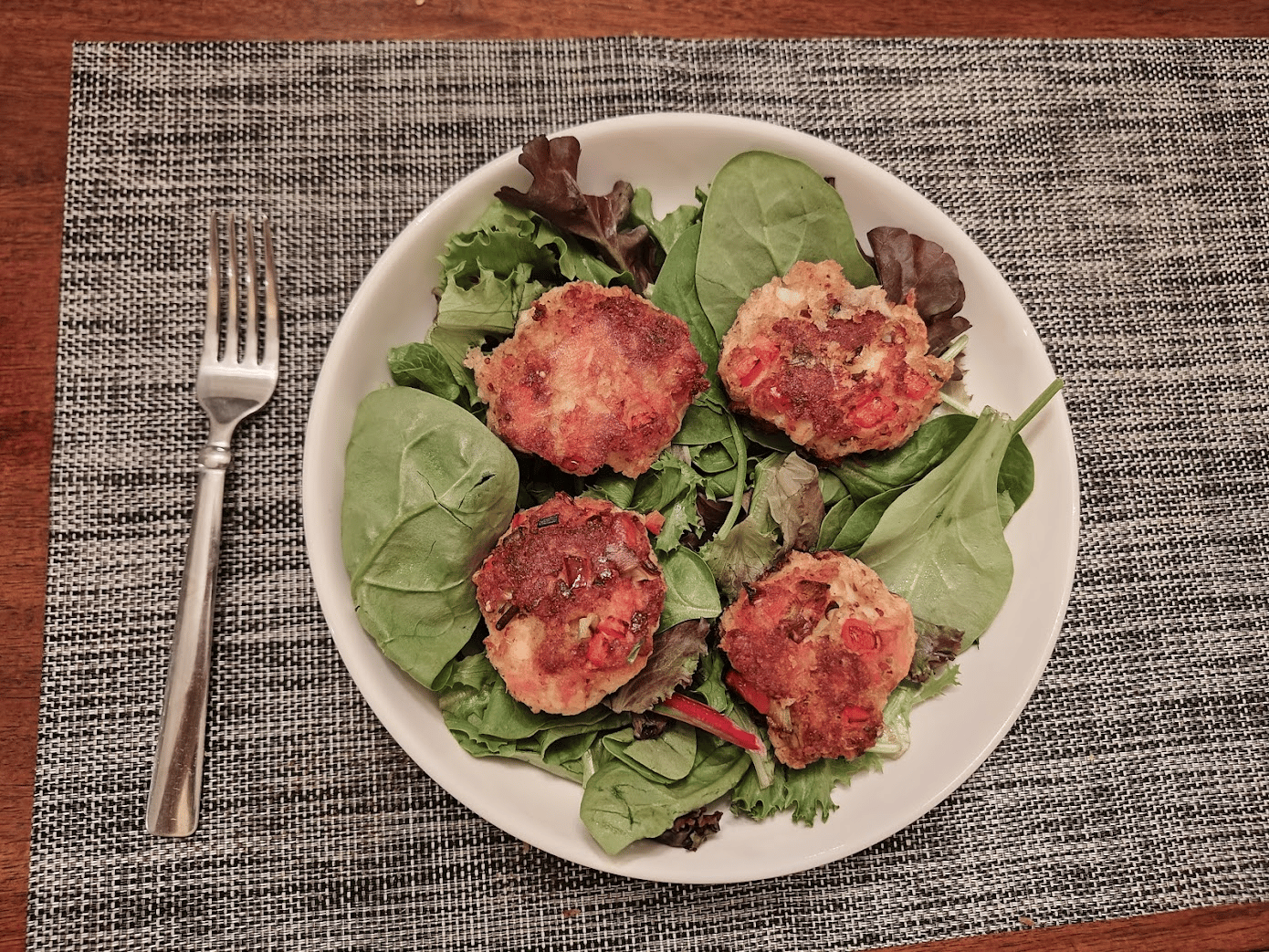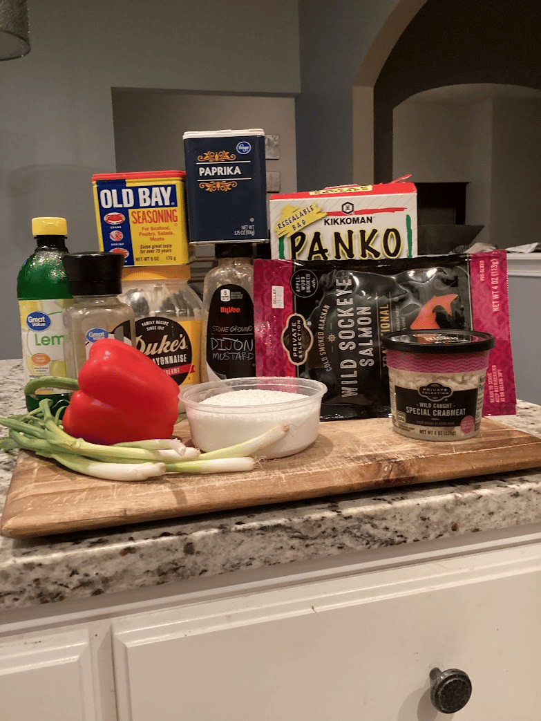 Another thing I think of when I think of the Pacific Northwest is salmon. In fact, Fat Bear Week just finished! So I’ll pretend that I, too, am preparing for hibernation with this recipe. I mostly followed what Vindulge provided. But to make it extra “Marylandy”, I added some Old Bay as well. The ingredients were pretty easy as well. Crab, salmon, pepper, green onions, bread crumbs, mayo, and spices. For the Old Bay, I just used what my heart told me was right. In this case I used about 1 teaspoon of Old Bay (Commish says that was not Marylandy enough). Then all it took was combining all the ingredients, giving them a good sautee, and then serving. Nice, simple, and tasty!