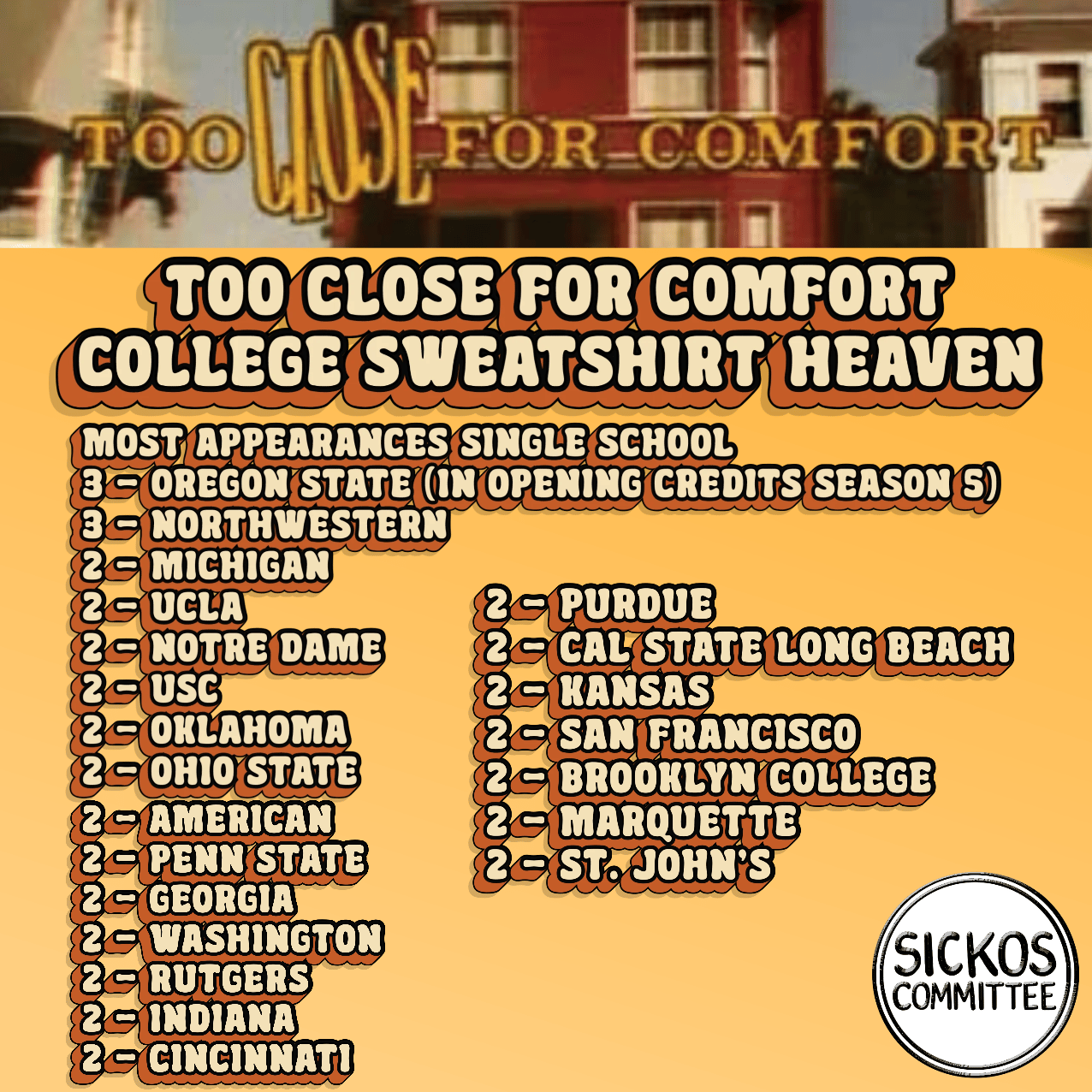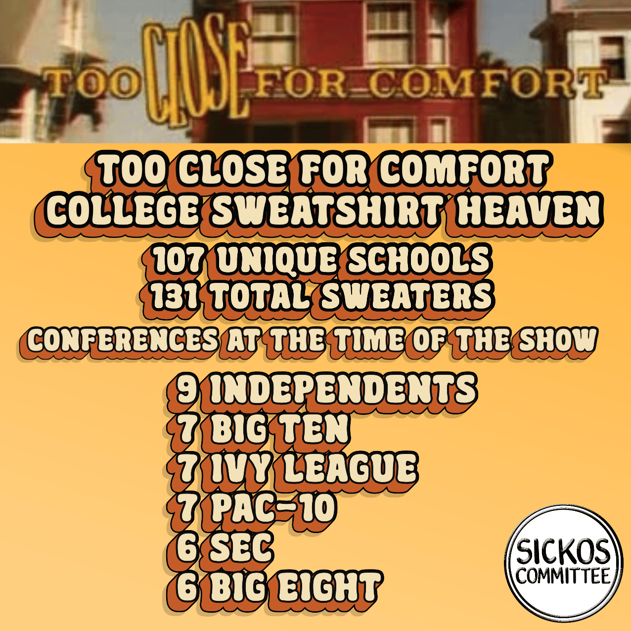 College Sweatshirt Heaven - Commish looks at the 1980s TV show and does a deep analytical dive into all 129 episodes where the main character wore so many different college sweatshirts.