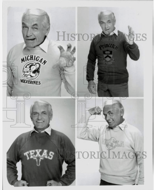 This is a picture from a 1982 TV Guide with all the sweatshirts they had sent to them. Many of these he never wore in the show including the Texas one, although he took promotional photos in them.