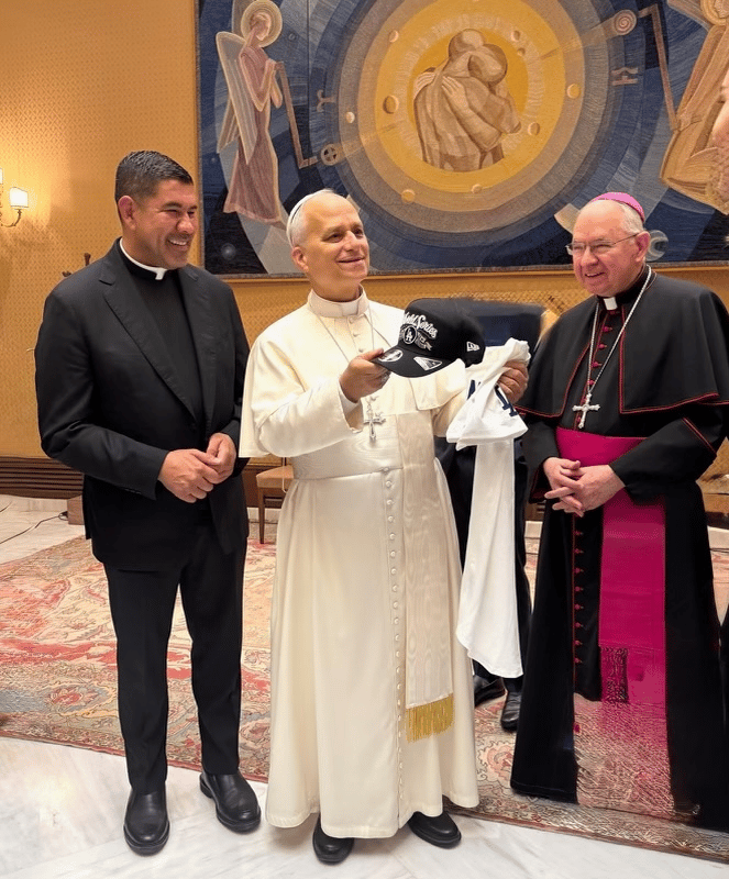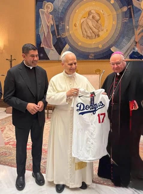 The Pope also has received a Dodgers jersey. But Archbishop Jose Gomez asked Pope Leo to pray for the Dodgers during the World Series! So the Pope got a Shohei Ohtani jersey and a World Series hat. Then asked to pray for them??? Wow, the Dodgers are just pulling out all the stops.