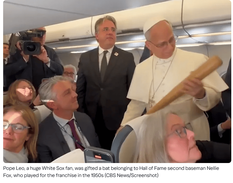 Mike Sweeney of the Royals gifted a jersey where the number on the back represented Pope Leo XIV’s place as the 267th successor of St. Peter, underscoring his role as the spiritual leader of the Catholic Church. Also, this would not be the first time the Pope was given a baseball bat. This is interesting enough, as the Royals are division rivals with the White Sox. It’s a bold move to present a bat to a fan of a division rival team.