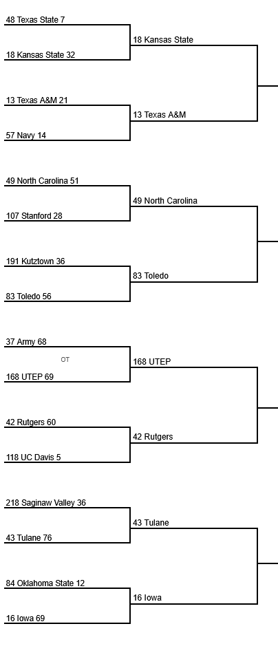 Bracket 3 out of 4, NICE win for Iowa. UTEP!! We got a Cinderella in El Paso!